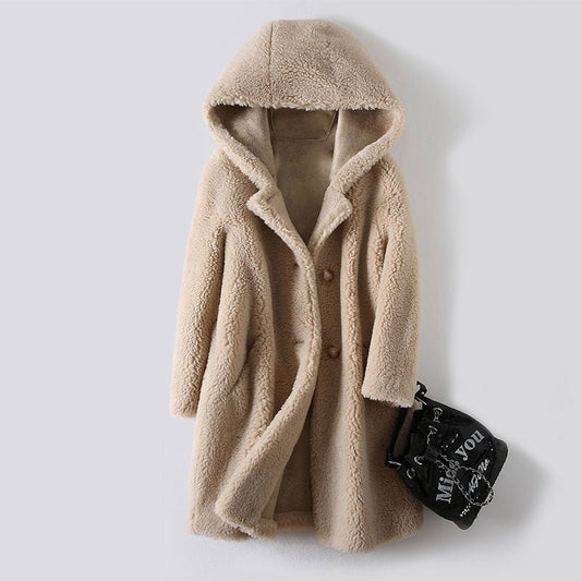 سترة نسائية بغطاء رأس من نيفا | صوف حمل ناعم