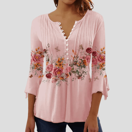قميص نسائي فيونا | نقش زهور وياقة على شكل حرف V، مريح وعصري