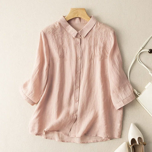 بلوزة نسائية لينا | كتان ناعم مع تطريز