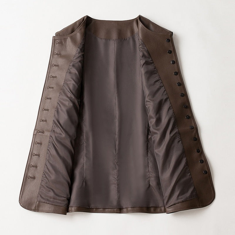Elevate your style with the Ava Women's Waistcoat Jacket, a perfect blend of sophistication and modern design. Crafted from high-quality leather, this waistcoat radiates subtle elegance, making it an ideal choice for both casual and formal occasions. Its snug silhouette showcases impeccable craftsmanship, ensuring a flattering fit that enhances your figure.