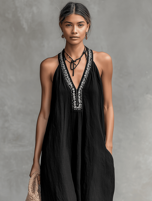 Vestito da donna | Scollo a V, senza maniche, lunghezza maxi, motivo ricamato