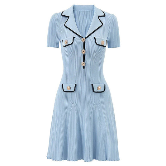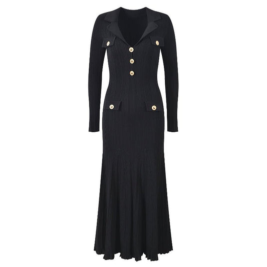 Vestido Formal Feminino Lara | Malha Canelada Fluida, Saia Evasê Elegante