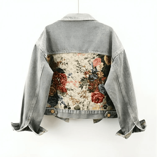 Jachetă de blugi pentru femei Flora | Broderie florală, spălare deschisă